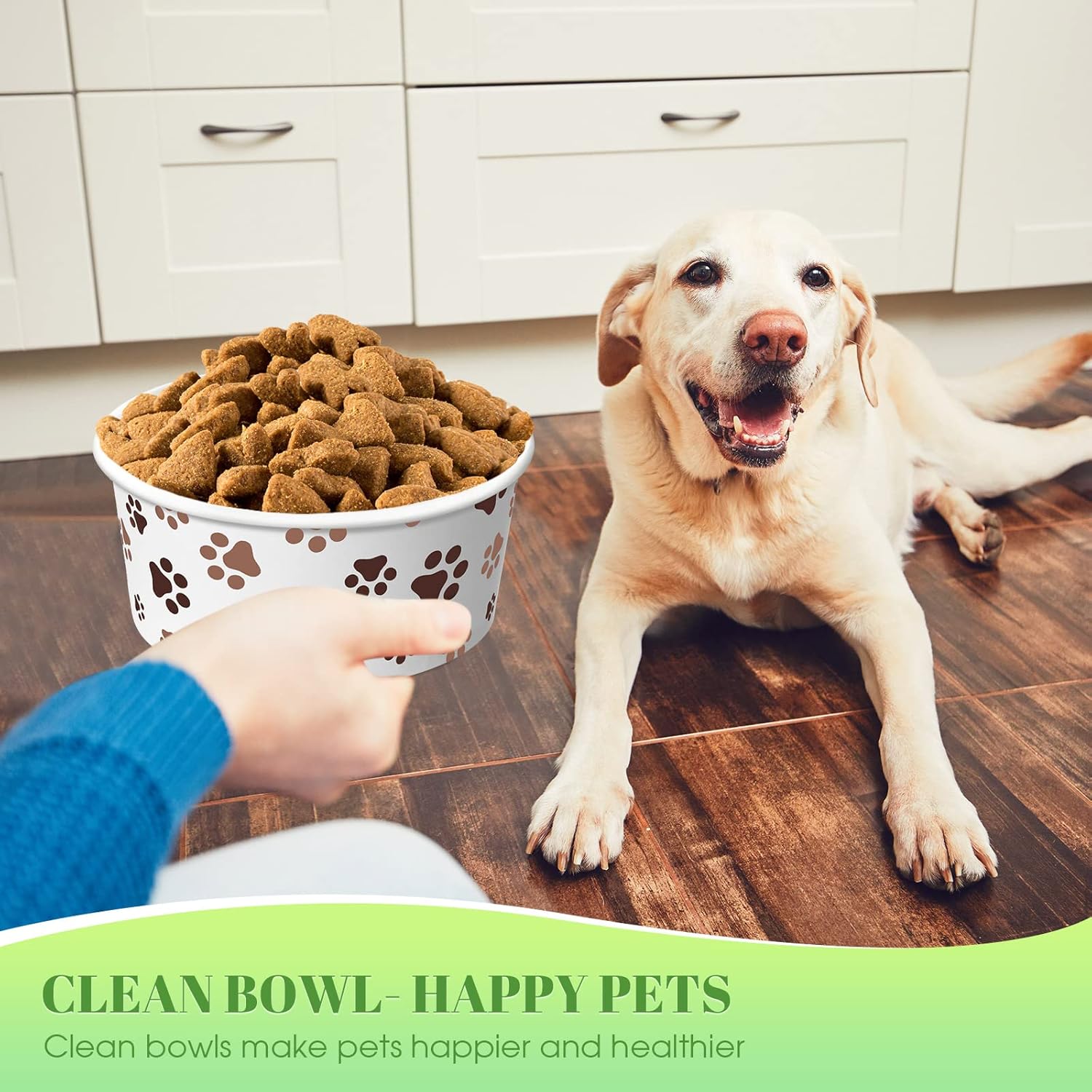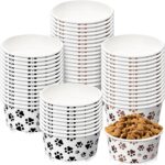 80 Packs Disposable Dog Bowls 12 Oz/1.5 Cup Pet Feeding Bowl for Small Dogs, Cats – Leakproof Paw Paper Pet Bowl for Wet Food, Water