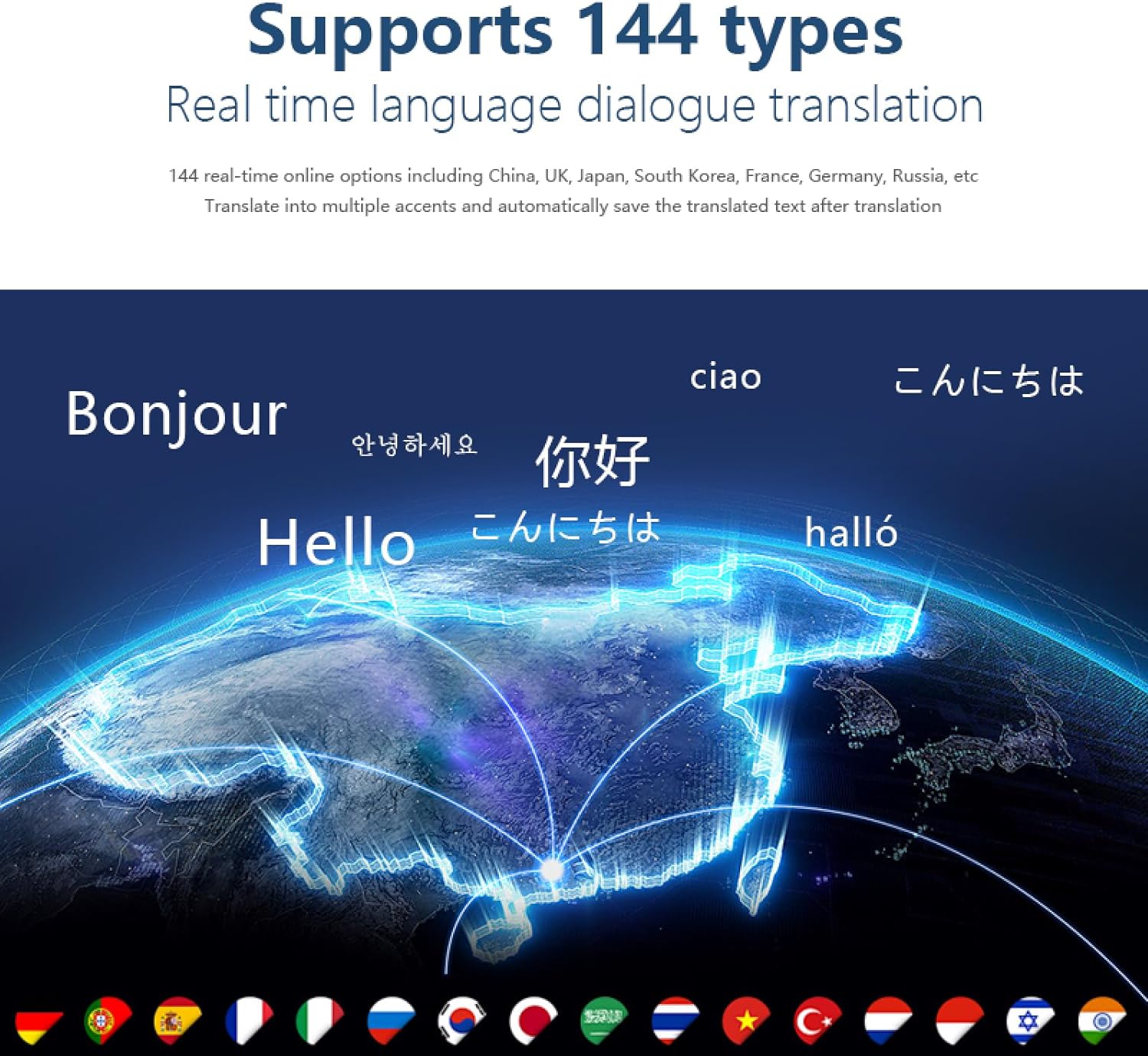 【AI intelligent real-time translation function】 The translation accuracy of minority languages reaches over 98%, supporting 144 languages,Business trips, travel, study abroad, communication barrier free, no need to worry about going to a strange place, intimate companionship, increase your confidence