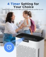 4 TIMER & 4 FAN SPEED: The room air purifier has 4 adjustable fan speeds. You can choose the fan speed according to the air quality. The higher the wind speed, the faster the purification speed. You can also turn on the timer when you sleep or go out, which are 2/4/6/8h