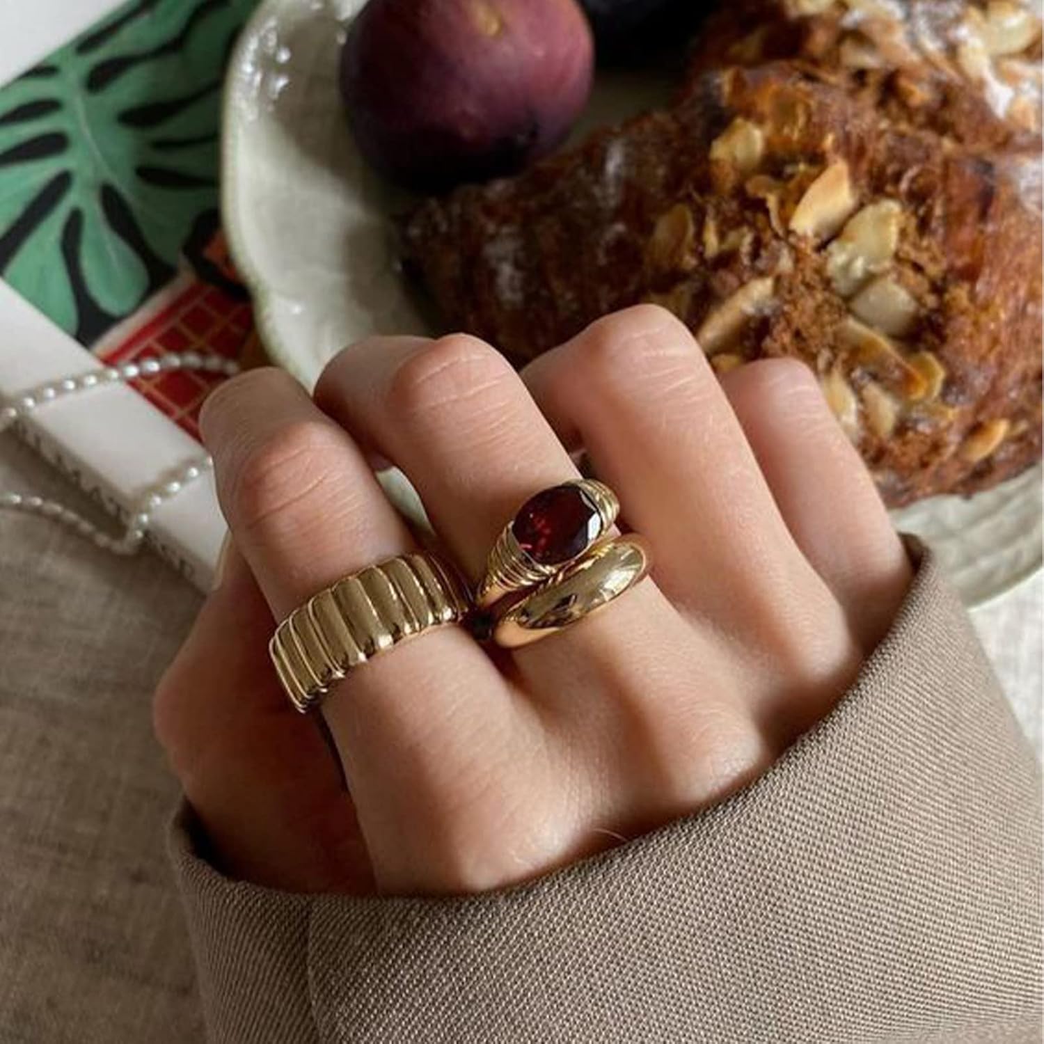 AllenCOCO Gold Ring for Women Trendy Gemstone Chunky Ring 18k Gold Plated Band Ring Signet Statement Ring