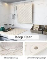 Quick Dry&Waterproof: Crafted from food-grade silicone, our dish drying pad ensures worry-free use. Its scientifically designed waterproof features promote superior air circulation, facilitating efficient drainage and drying. Silicone is renowned for its exceptional durability and long lifespan, as it is resistant to cracking, fading, odor, and deformation.