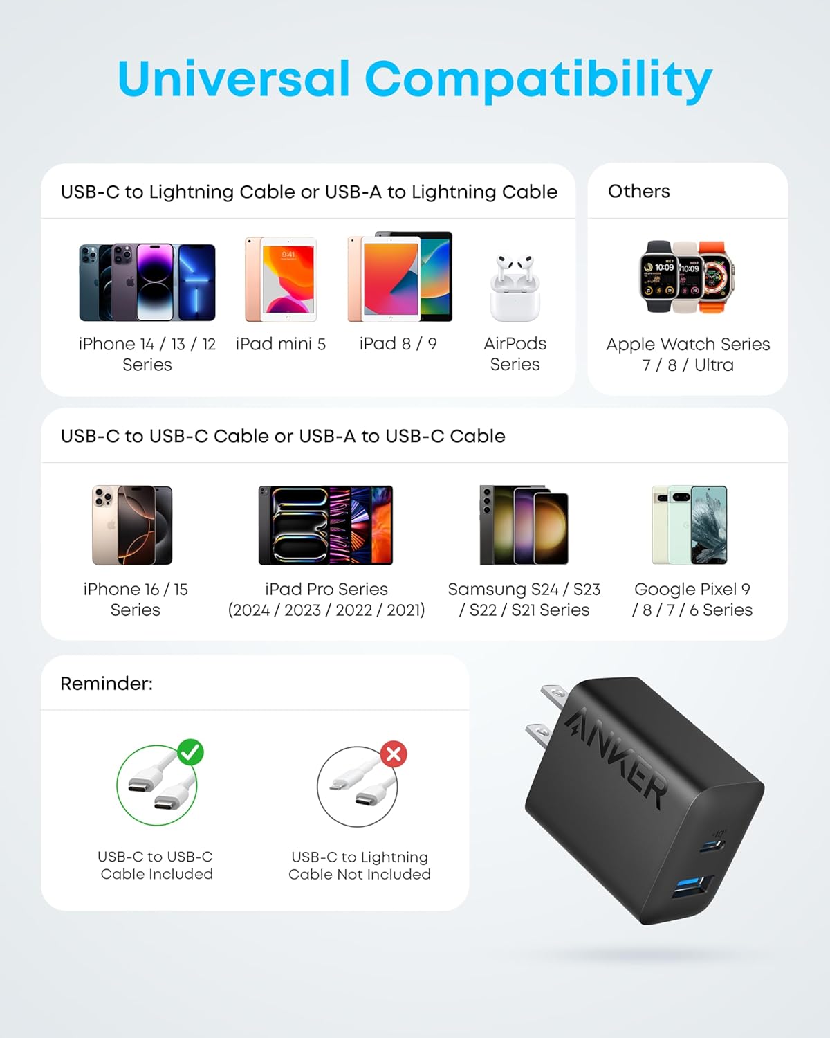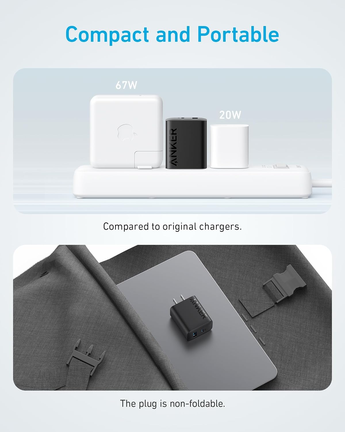 Anker iPhone 16 Charger, 2-Pack 20W Fast USB C Charger Block, for iPhone 16/16 Pro Max/15 Series/iPad Pro and More (Black, 2 Pack & 2 Cable)
