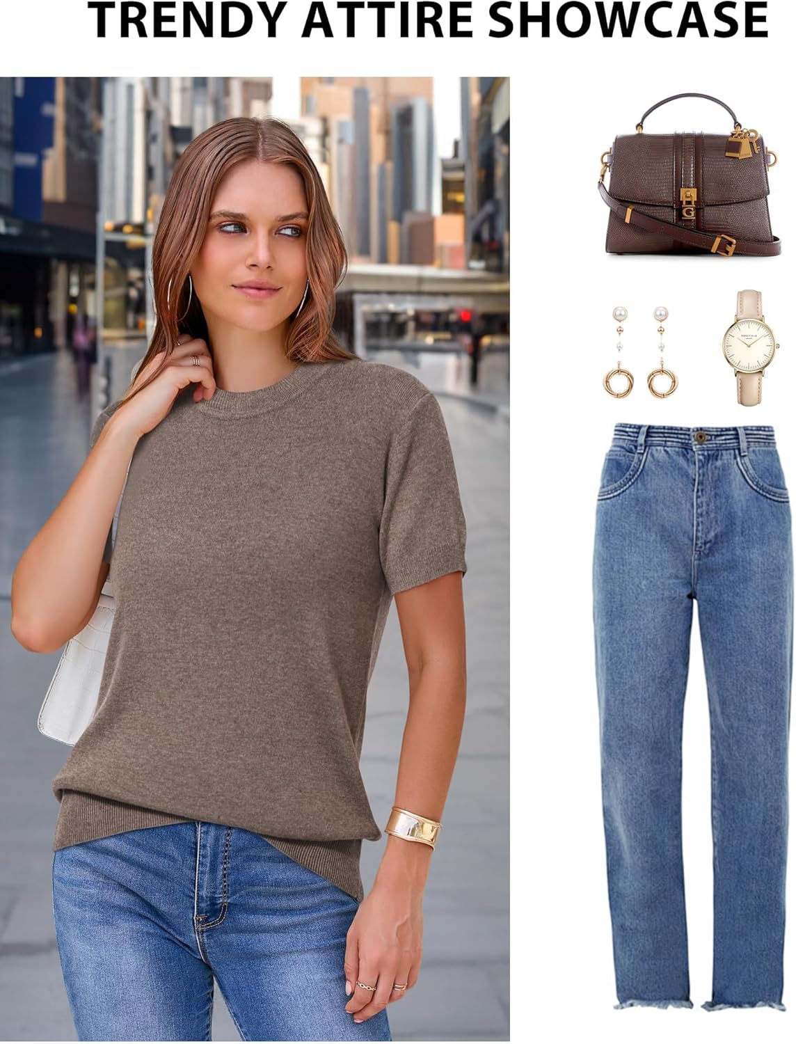 Arach&Cloz Women’s Wool Blend Loose Fit Soft Summer Sweater Short Sleeve Crew Neck Casual Pullover Tops Trendy Outfits 2025