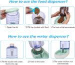 Features of feeder and waterer set Automatic gravity flow technology Food grade materials The top cover on the feeder Non-slip rubber feet Provide fresh water and food at all times Easy to clean Siphon device design