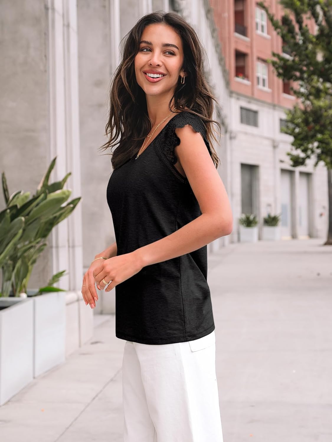 AUTOMET Womens Tops Casual Dressy Lace Summer Tee 2025 Cap Sleeve T Shirts Cute Basic Trendy Fashion Spring Outfits