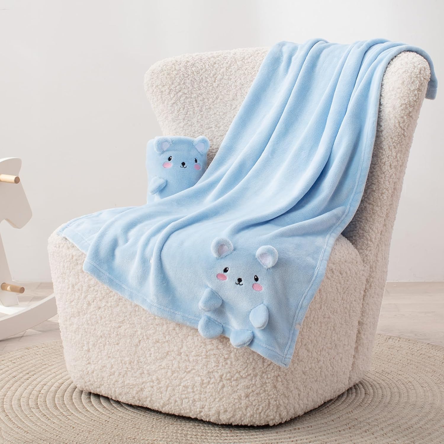 Baby Blanket, Foldable Bear Shape Plush Baby Blanket, Super Soft Warm Breathable Receiving Blankets Newborn Nursery Swaddle Blankets Gifts for Crib Stroller Baby Boys Girls Birthday Baby Shower