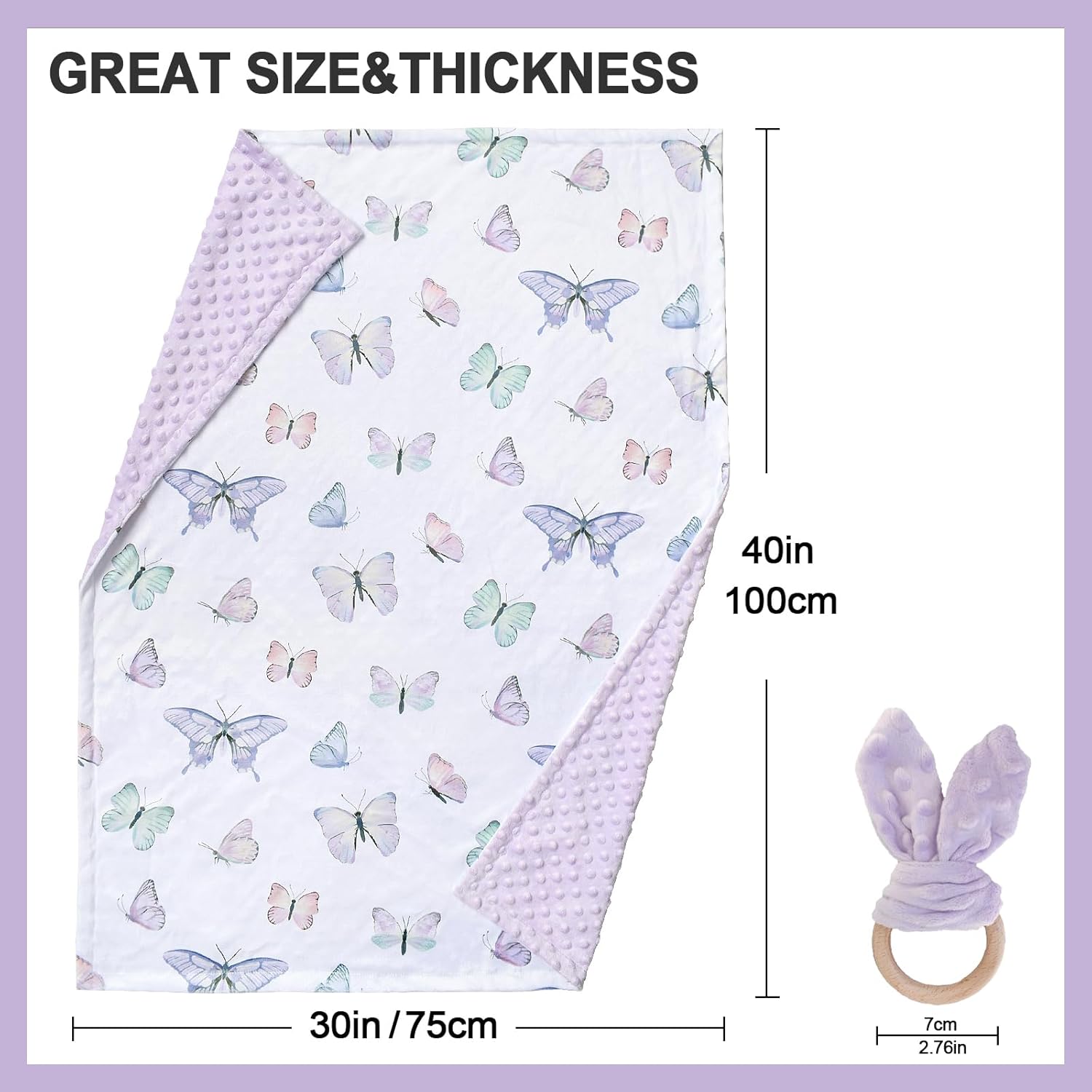 GREAT SIZE&THICKNESS:Baby minky blanket sized 30*40inches,it’s perfect size for stroller blanket,nursing cover,car seat cover and it can be used in toddler bed,crib and sheet.The print is super cute,it’s nice and extra soft,not to thick but will definitely keep your baby warm and great size for keeping your baby covered up