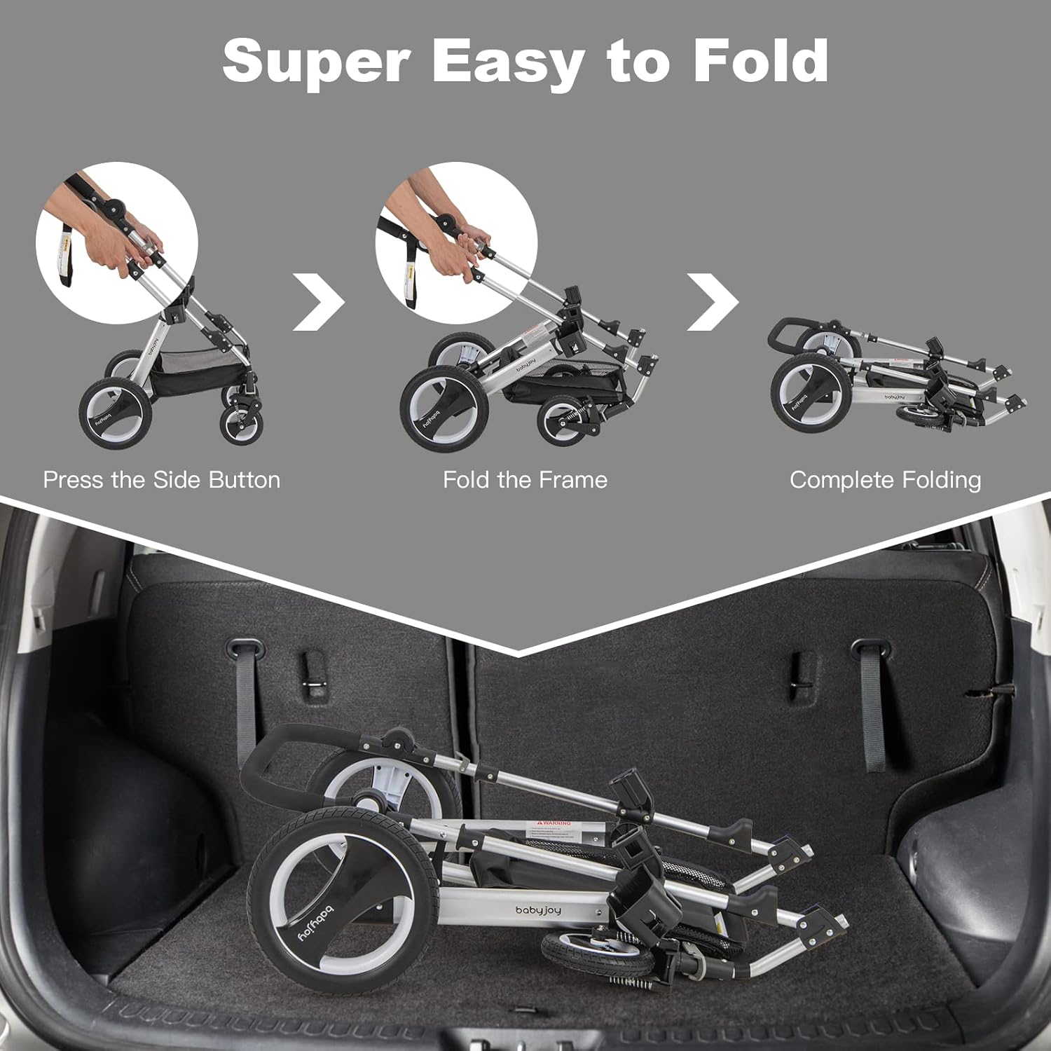 Lockable Rubber Wheels – Adds a sense of safety and flexibility when you go out along with your little baby. You can operate it easily with foot-operated linked parking brakes. You can assemble or disassemble it in one second for its creative folding design. It can be transformed from a standing stroller to a folding one with its creative spinning connector which enables you easily store it at home or place in the car when your family plan to take your babies outside. It is quite labor efficient
