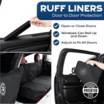 FOR CAR, SUV, OR SMALL TRUCKS – Ruff Liners’ back seat pet cover for dogs is designed for mid-size vehicles like Tesla Model 3 and Y, Toyota Tacoma, RAV4, Camry, Jeep Cherokee, Honda CRV, Ford Explorer, Lexus RX, and similar. The medium size (52.4’’ long, 24.8’’ wide, and 21.7’’ high) completely covers your backseat and doors with patented protection (U.S. Patent No. 12,221,024).
