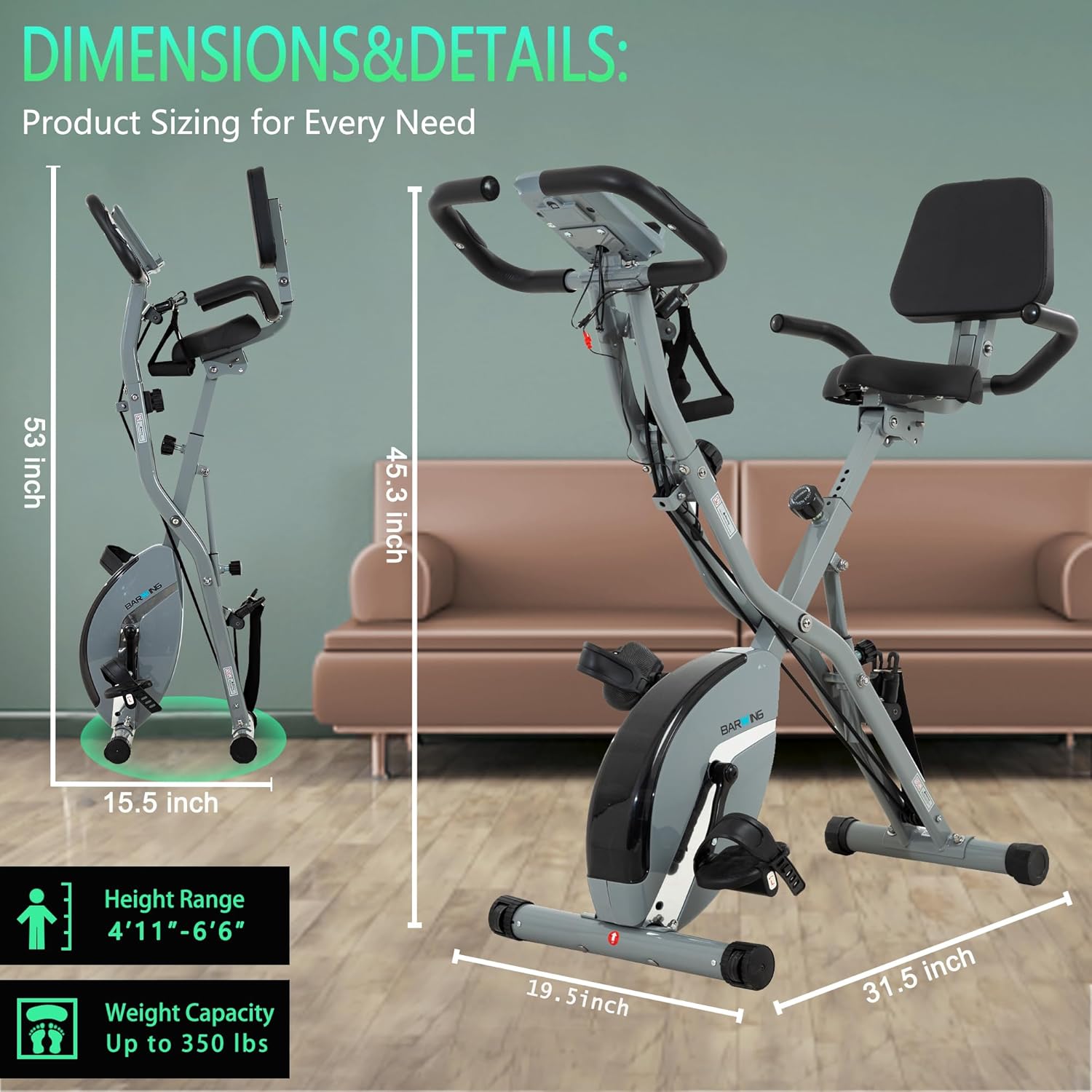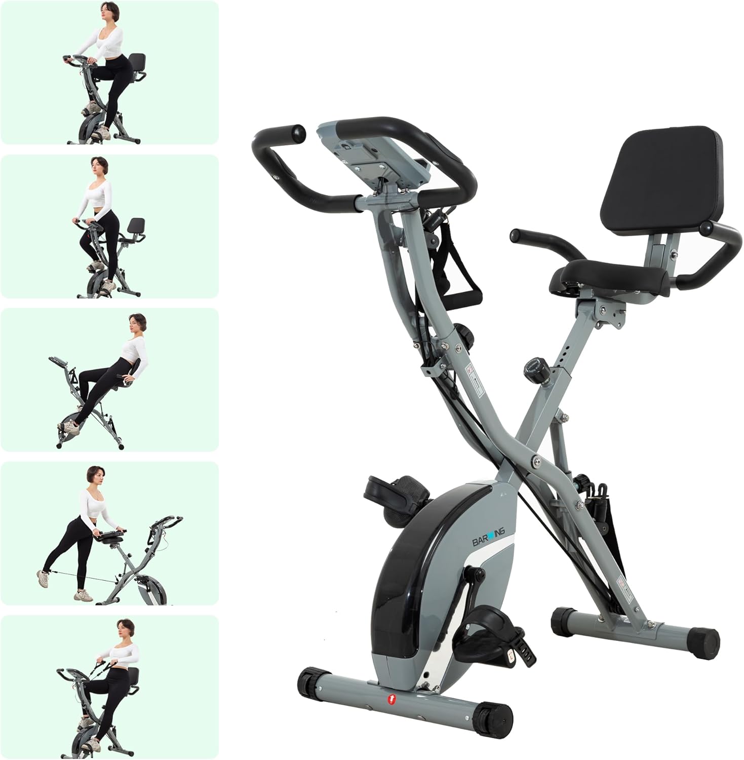 BARWING Stationary Exercise Bike for Home Workout, 5 IN 1 Foldable Indoor Cycling Bike for Seniors, 350LB Capacity, 16-Level Magnetic Resistance, Seat Backrest Adjustments