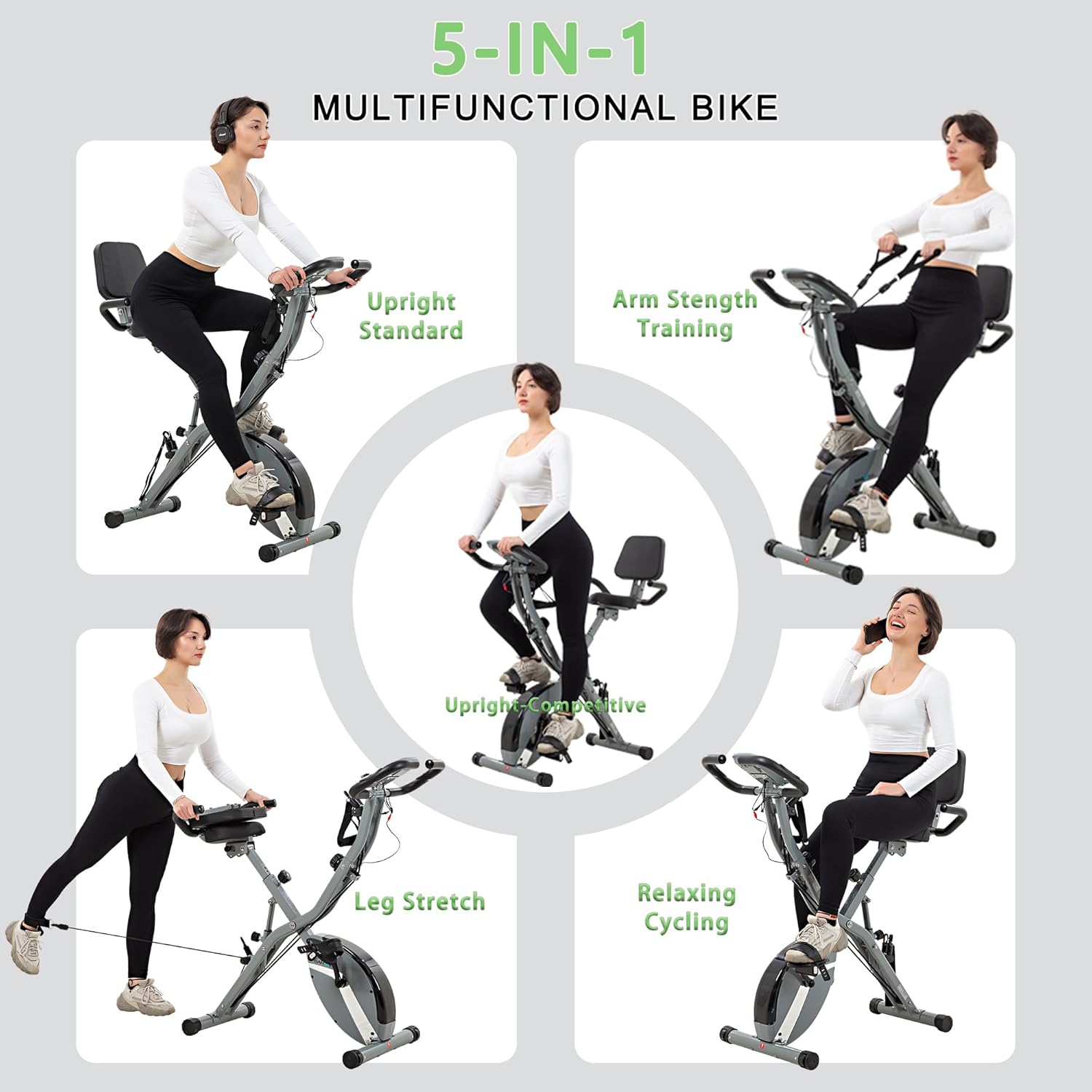 【 EXERCISE BIKE】 16-8-2-3: 16 Levels adjustable magnetic resistance. 8 Seat height adjustments. 2 Seat angle adjustments. 3 Workout bike posture adjustments: upright, recline, and folding. X-bike allows you to exercise more freely and comfortably, and burn your calories as much as you like.