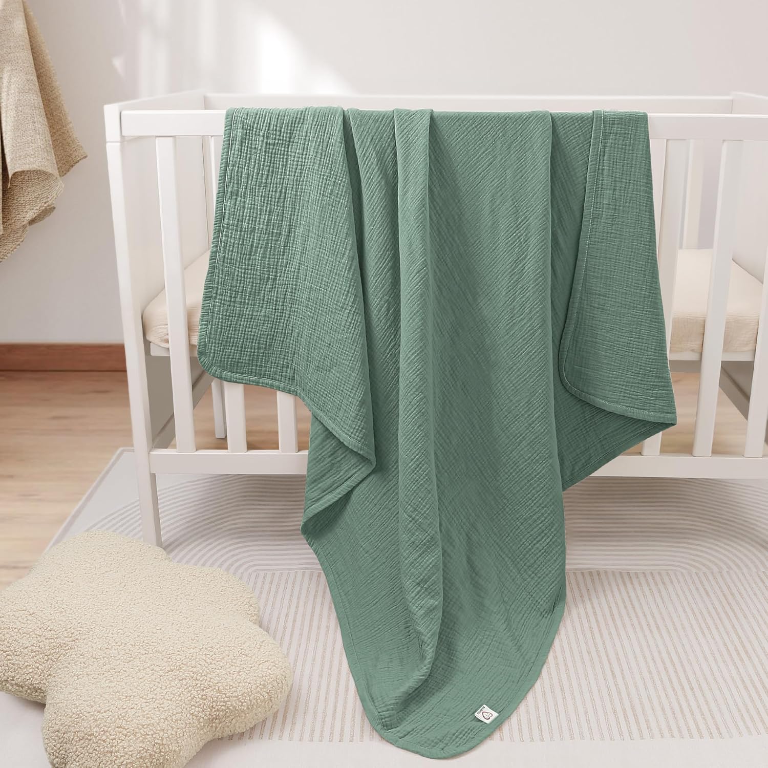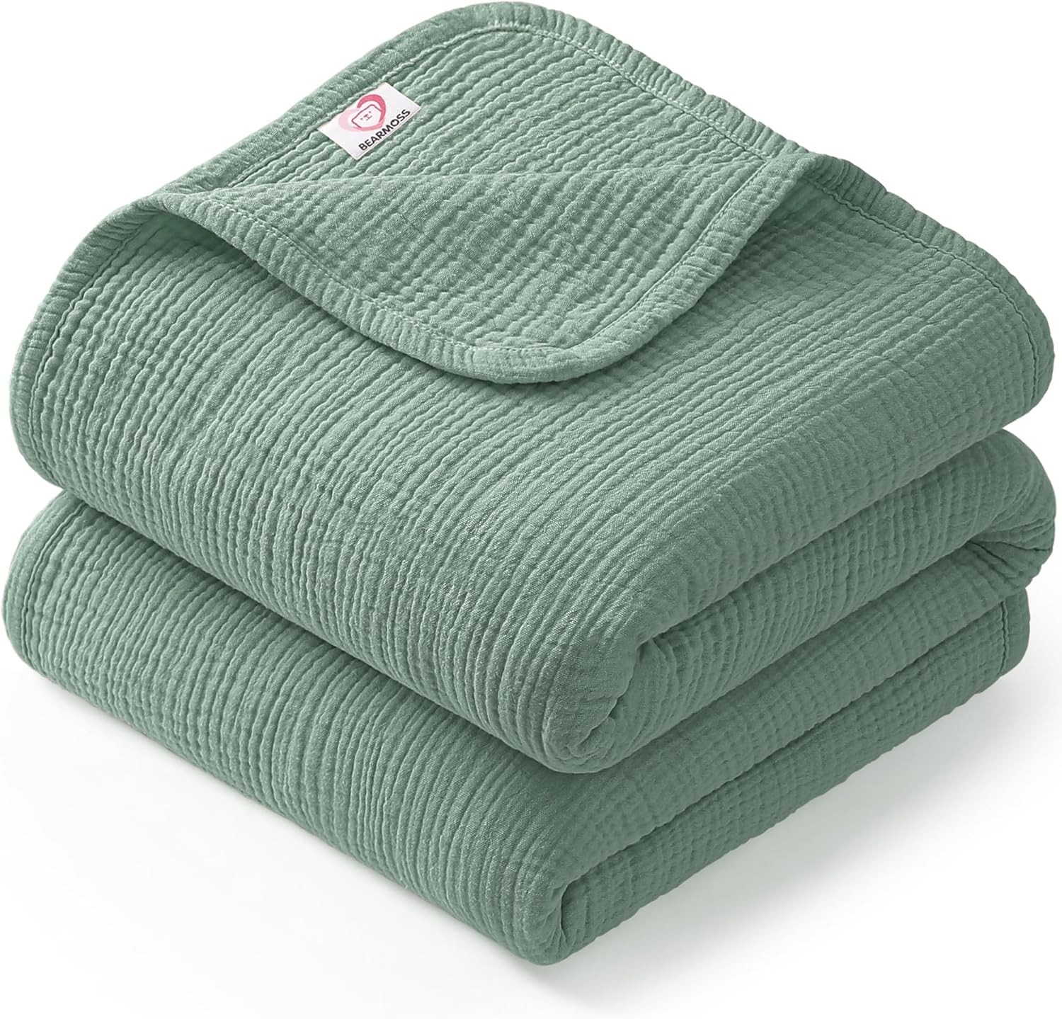 Bearmoss Muslin Baby Blanket, 100% Cotton Crib Blanket for Toddlers, Soft Breathable Reversible Nursery Blankets for Baby Boys Girls (47x47in, Green)