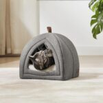 Cozy and Sound: This cat tent features an extra-soft cushion with polyester fiber fill and a plush Sherpa cover, providing a cozy sanctuary for your pet’s peaceful slumber.