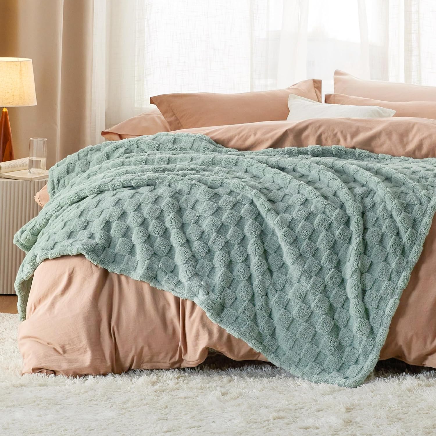 Bedsure Sage Green Fleece Blanket for Couch – Checkered Throw Blanket for Women, Cute Soft Cozy Throw for Girls, 50×60 Inches