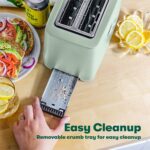 BELLA 2 Slice Toaster with Auto Shut Off – Extra Wide Slots & Removable Crumb Tray and Cancel, Defrost & Reheat Function – Toast Bread, Bagel & Waffle, Sage