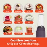 bella 6 Pcs Portable Rocket Blender, Juicer & Smoothie Maker, Press & Twist Design, EverGood™ & BPA Free Dishwasher Safe Parts, 4 Tip Stainless Steel Blade, Cord Wrap, 240 Watt Motor, Plum