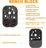 3. Bench Block: Special and stable surface finish to protect your precious from scratches while drifting and staking. Our bench block has a main spring removal groove; front sight staking groove; rear sight drift channel; the link pin removal “V” channel; hammer and sear pin removal holes; slide rail dressing round bottom channel; ejection port dressing channel; pin storage and pin catcher. Great help for maintenance!