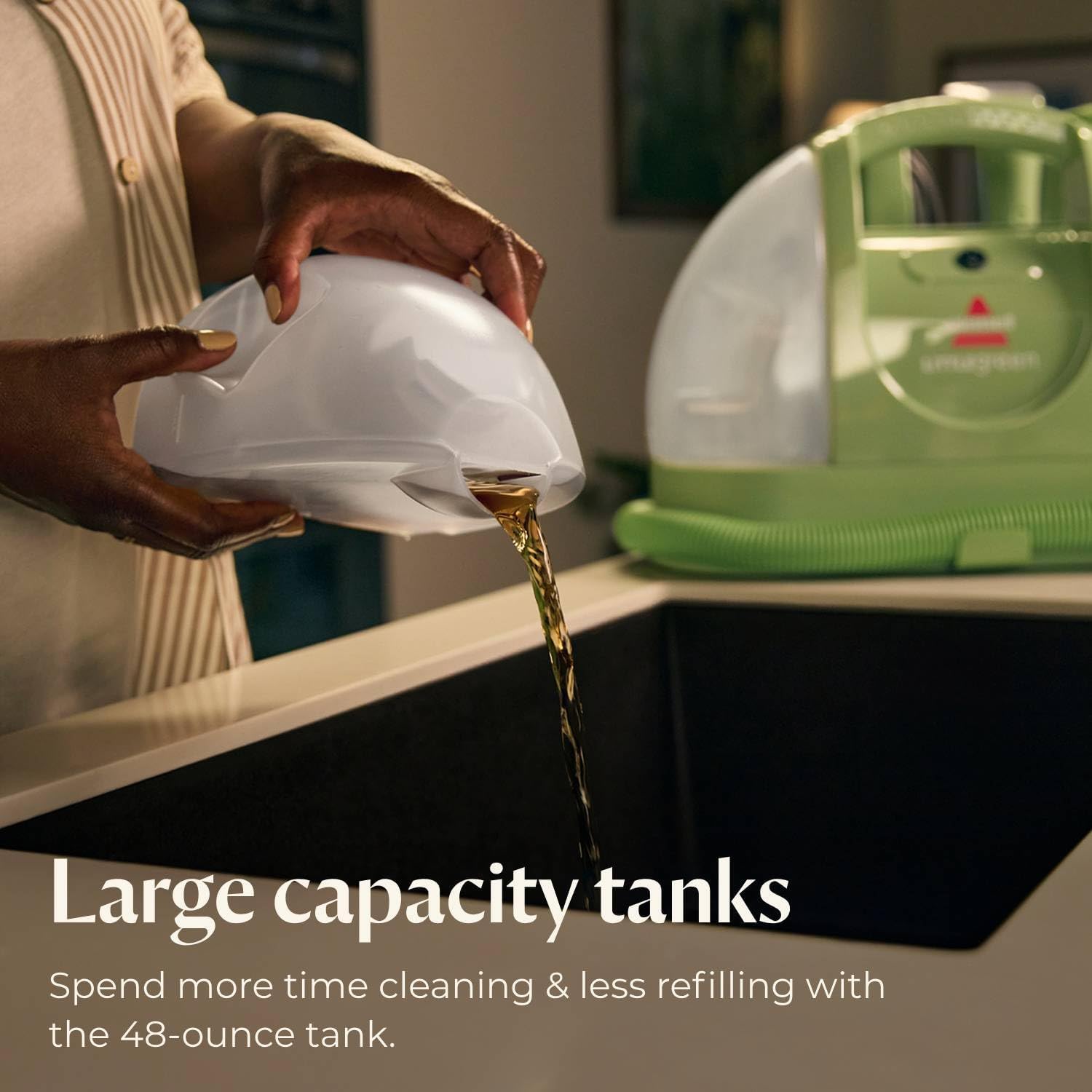 LARGE TANK CAPACITY. 48 oz. tank means you can clean more between refills.