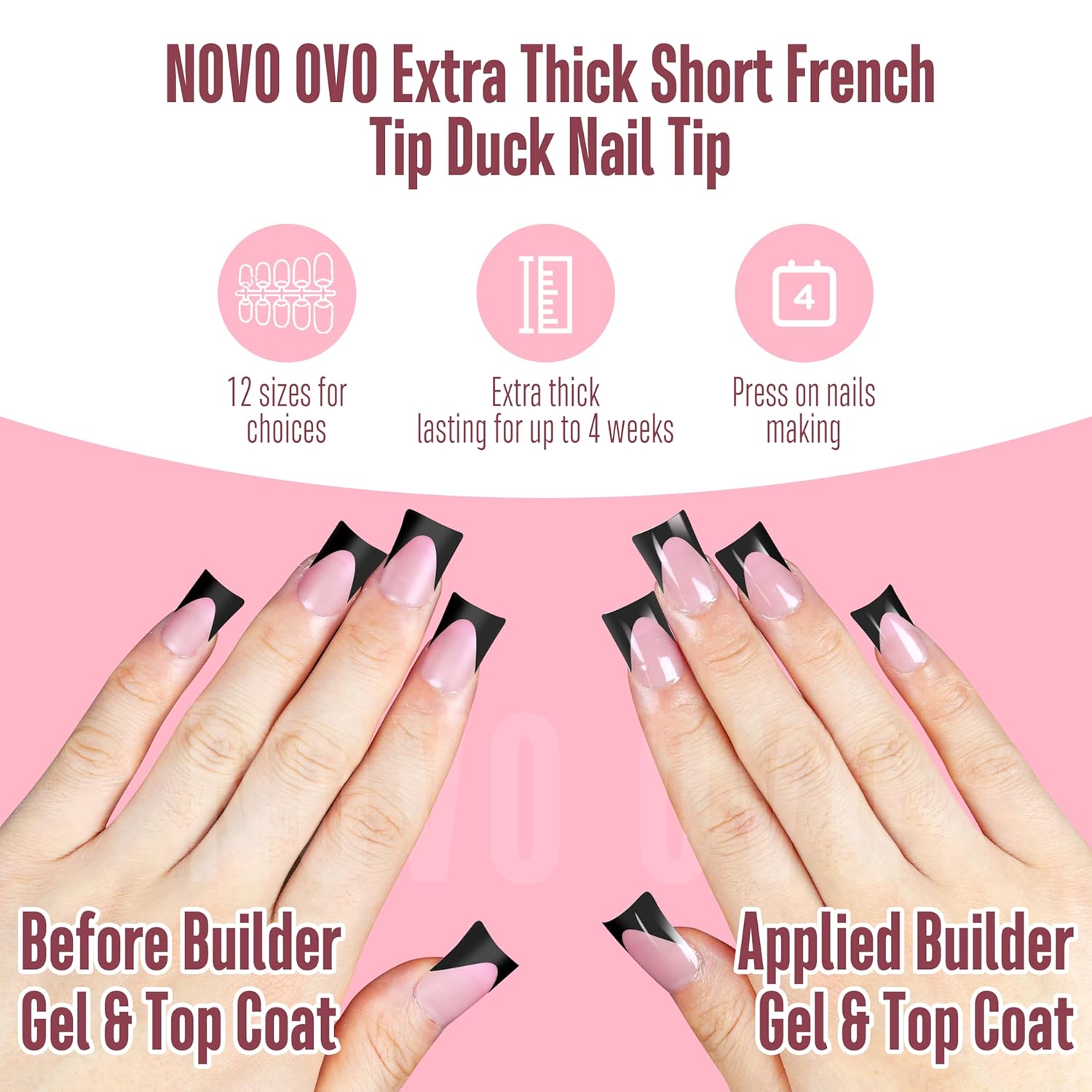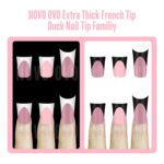 GET A SIMPLE FRENCH TIP DUCK NAIL PEDICURE WITH JUST 3 STEPS: NOVO OVO pre-designed nails are here to make your manicure easier! We’ve already applied a tip primer and base coat on the soft gel nail tips. Simply stick them on your nails with UV gel or glue, then add a layer of builder gel and top coat. In just 15 minutes, you’ll have stunning French Tips duck nails on your hand!
