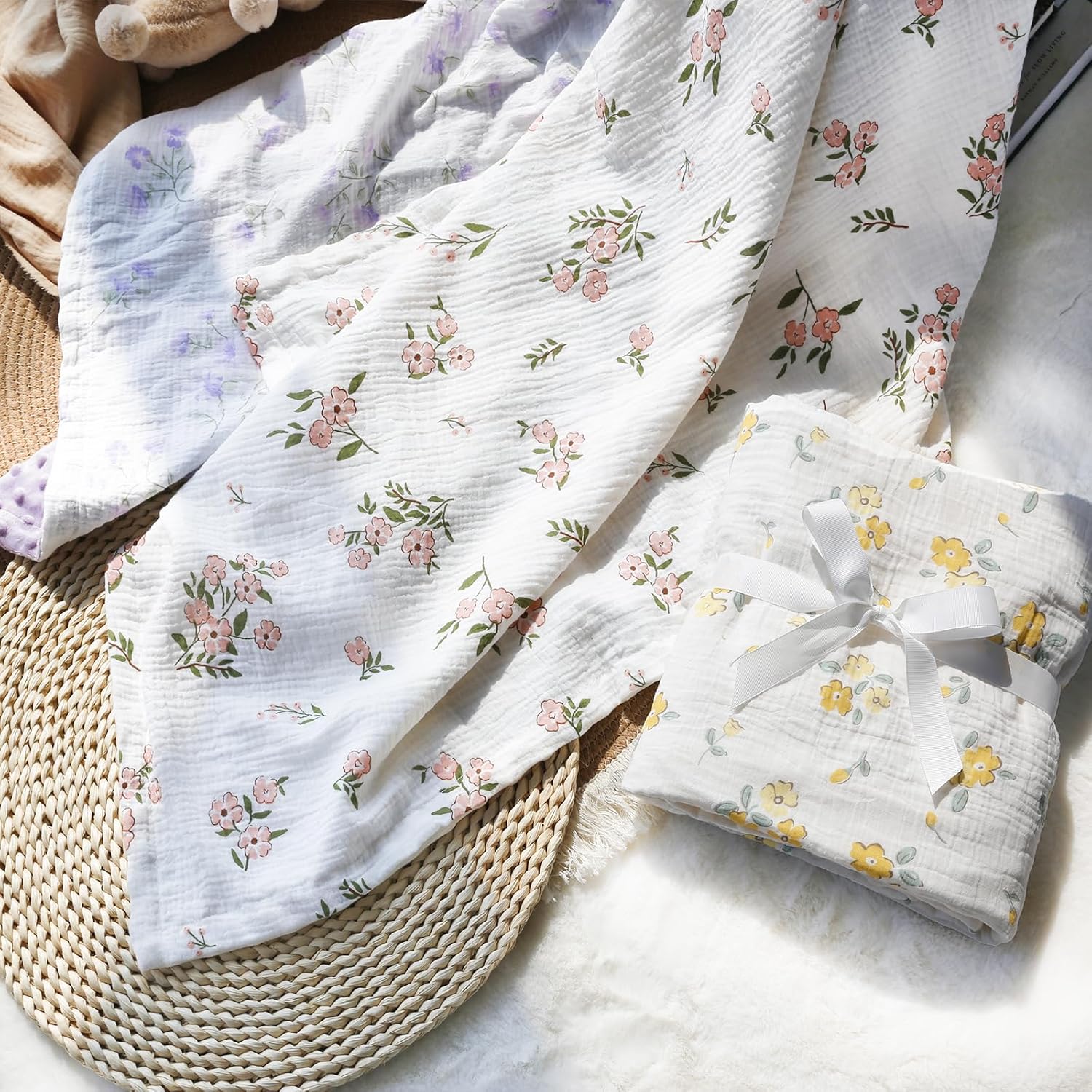 Ultra Soft: Muslin and minky blankets are made from breathable cotton muslin and 100% soft polyester fabric, so gentle and soft on baby’s delicate skin. These baby blanket provide a cozy and comforting environment for newborns, promoting better sleep and relaxation