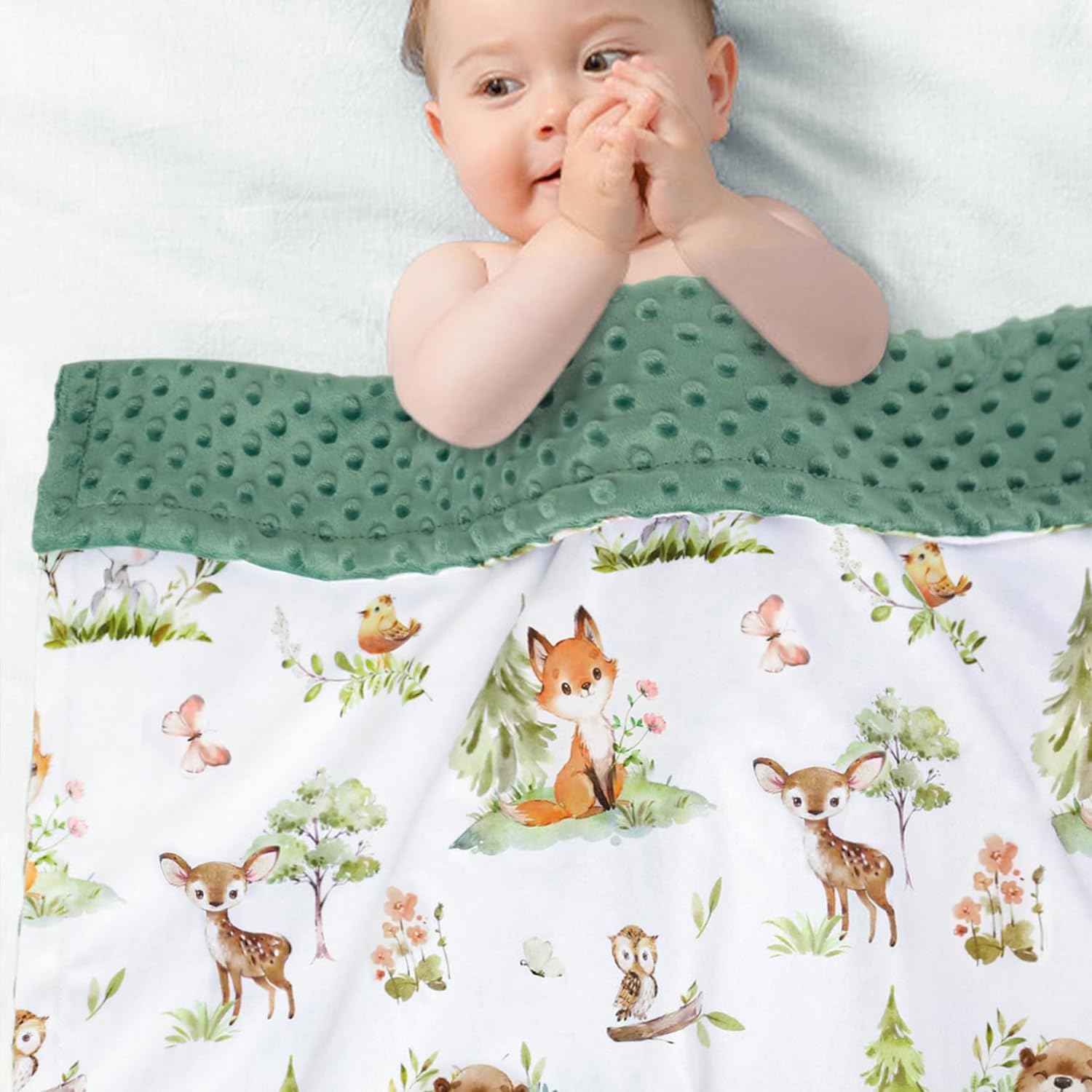 BORITAR Baby Blanket for Boys Girls Super Soft Double Layer Minky with Dotted Backing, Lovely Woodland Animal Design Blanket for Toddler Newborn 30 x 40 Inch(75x100cm)