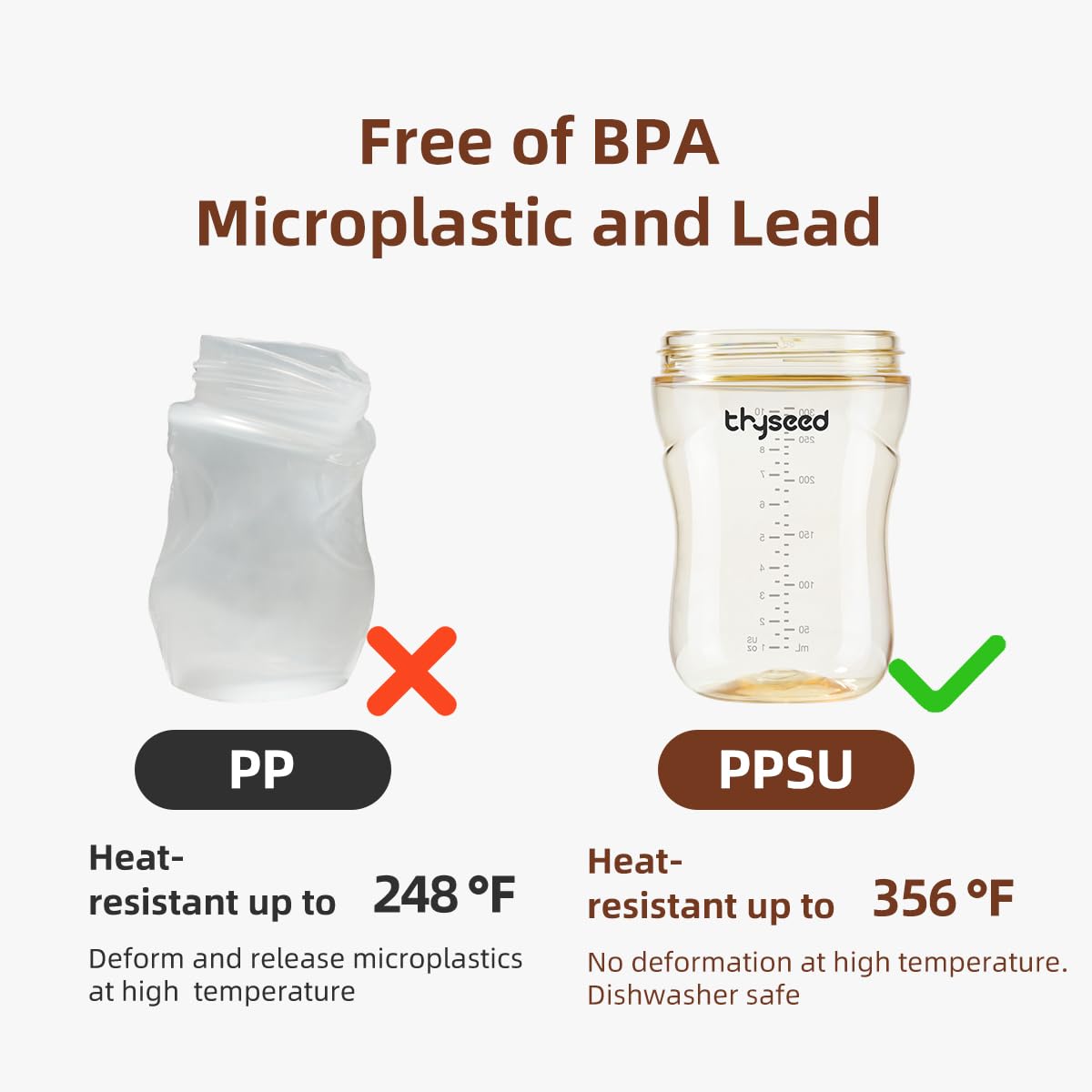 EASY TRANSITION WITH THYSEED: Plastic’s golden standard PPSU material, more expensive, more safe. Hygienic and safe nipple is made of 20 degree silicone, soft and squeezy as mom, BPA, PVC and phthalate free. The breast-like nipple shape encourages a proper latch for a more natural bottle feeding experience and eases the transition from breast to bottle and back again.
