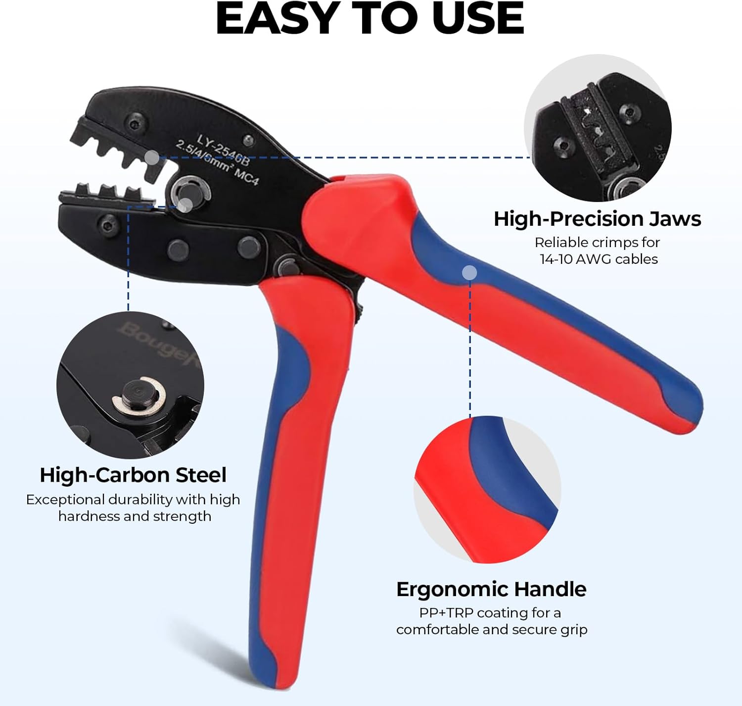 BougeRV Solar Crimper Tool Kit – Crimper, 6 Pairs Connectors, Spanner Wrench for Solar Panel Cable Assembly and Installation