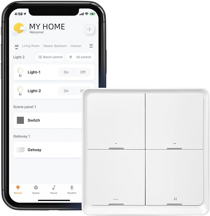 【Out-of-Box Preset Automation】Each button is associated with a preset scene in each room. Once added and assigned to a room, you can tap to activate the same scenes in the app for the room without any further settings.