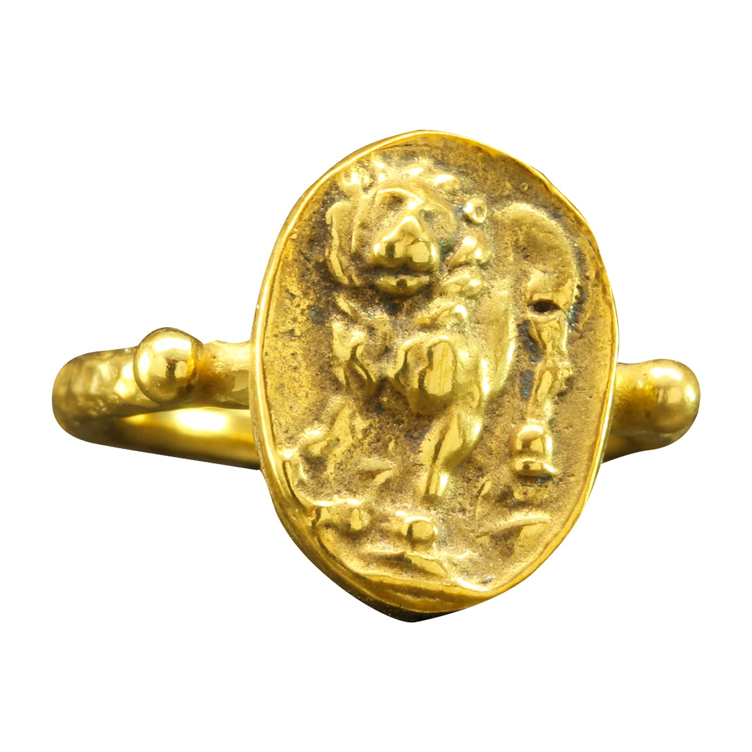 Caprixus Signet Ring 925 Sterling Silver Lion Ring Ancient Coin Ring 24K Gold Vermeil Designer Handmade Rings for Women Hammered Pinky Ring Turkish Fine Jewelry