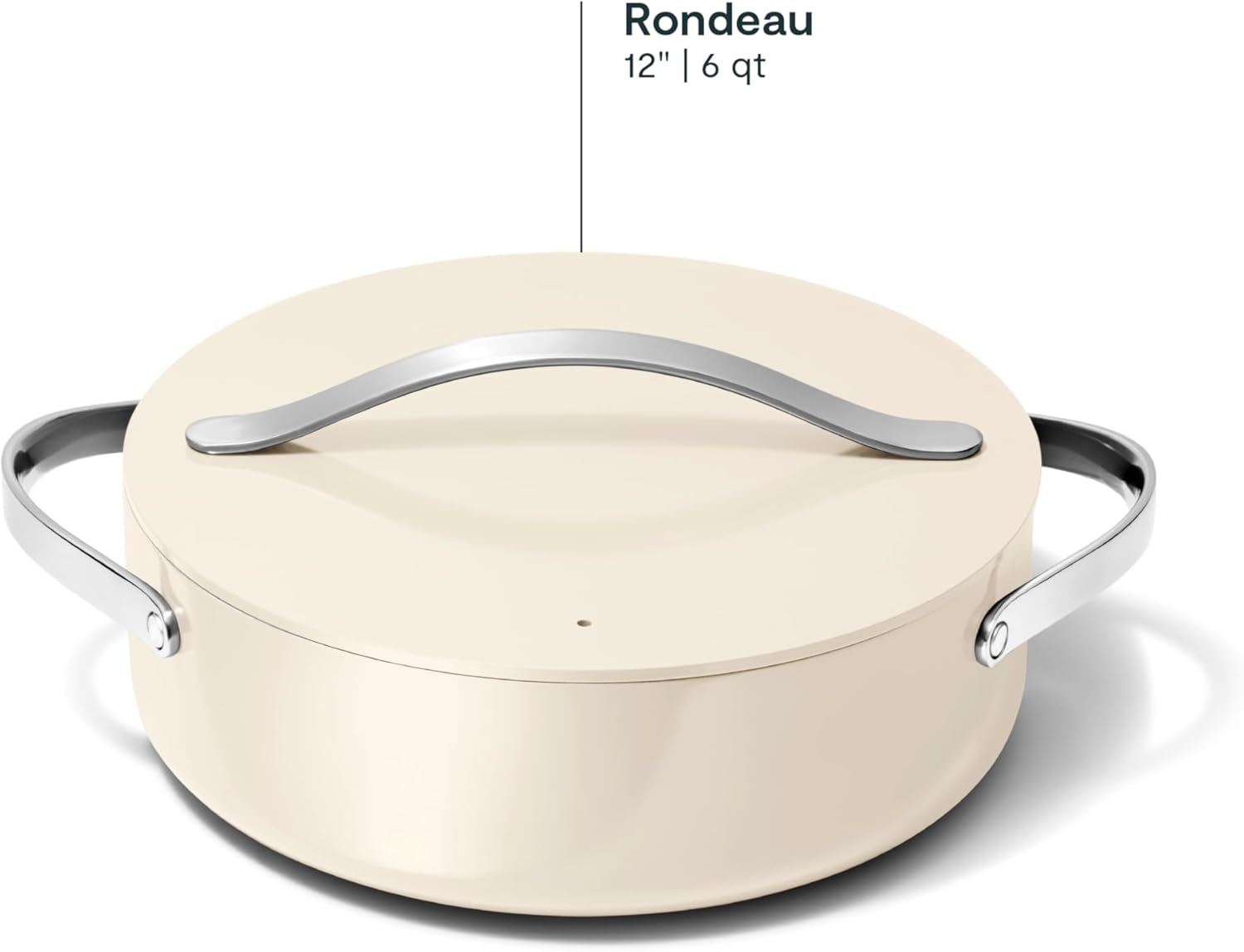 Caraway Rondeau – 6 Qt Non-Stick Pan with Lid – Free From Forever Chemicals – Perfect for Searing, Braising, & Roasting – Cream