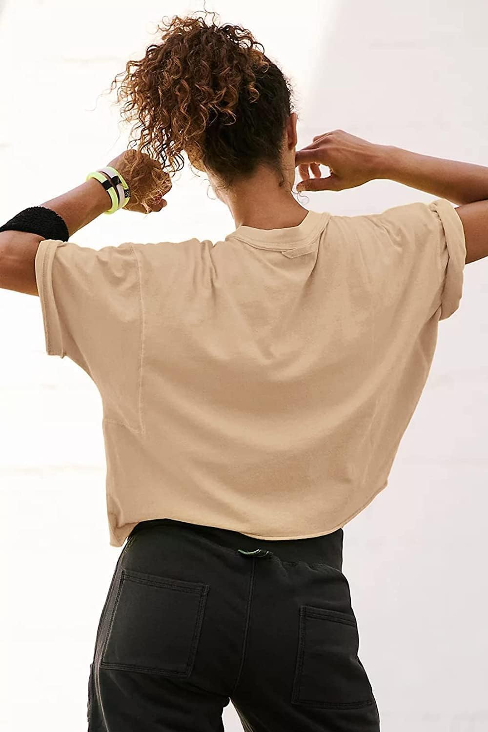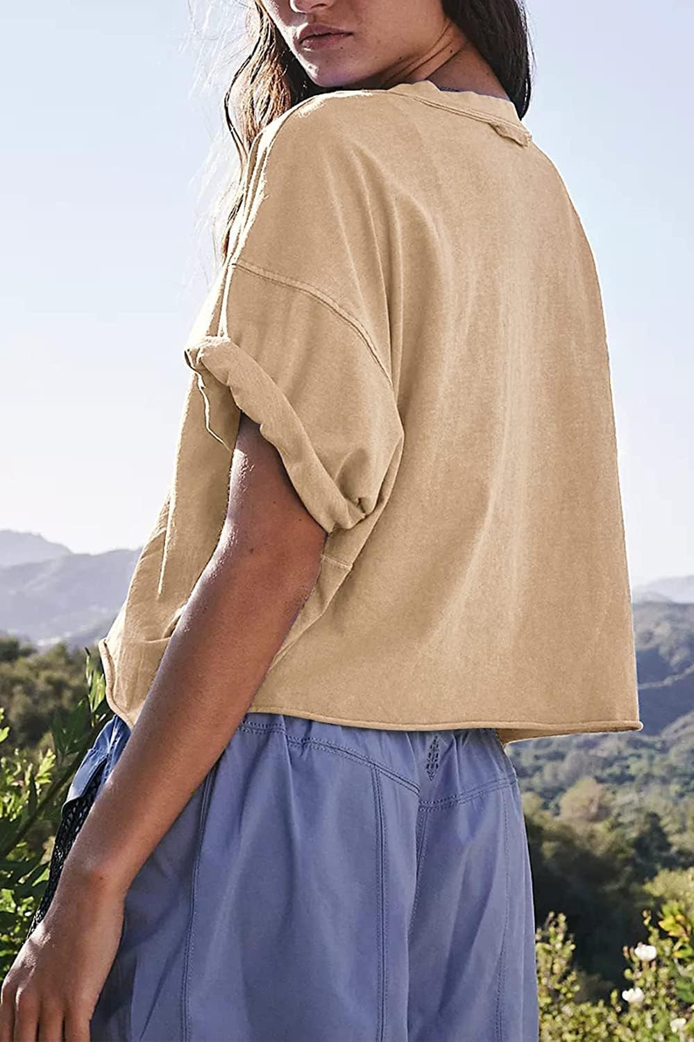 The roll hem and box fit give this workout t-shirt a stylish and trendy look while maintaining its practicality and versatility. Warm up or cool down with this essential tee,featured in an oversized boxy fit and cropped design with raw-edge seaming throughout for a lived-in look.Crop tops for women & Casual and cute shirtTees for women sporty & Relaxed fit cropped topsBasic crop top t-shirts & Workout athletic crop t-shirts