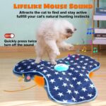 Hide and seek cat toys – A feather wand hidden in double cat cloth cover moving quickly appear and disappear constantly, The lifelike mouse squeaky and feather movement are sure to captivate your cat’s attention, providing them with hours of fun and stimulation