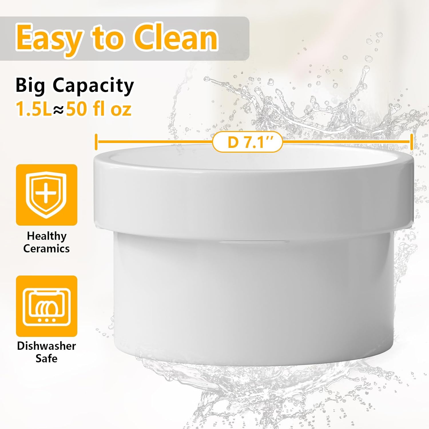 Ceramic Dog Bowls Elevated with Silicone Mat for Medium Dogs 3 Height Adjustable Dog Raised Bowl Stand Wooden Puppy Bowl of All Ages (1.5L/50oz*2) Lightwood