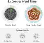 Suitable Size: This slow feeder dish holds about 3/4 cup of kibble, perfect for dry or wet food. We recommend using 1/2 cup per feeding and spreading the food evenly to expose the ridge for better slow feeding, while preventing spills. The smaller portion helps prevent overfeeding, reduces vomiting, and promotes better health.