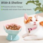 Whisker-Friendly: These wide cat feeding bowls prevent whisker fatigue, and their shallow design makes it easy for cats to reach the food at the bottom, helping avoid neck strain.