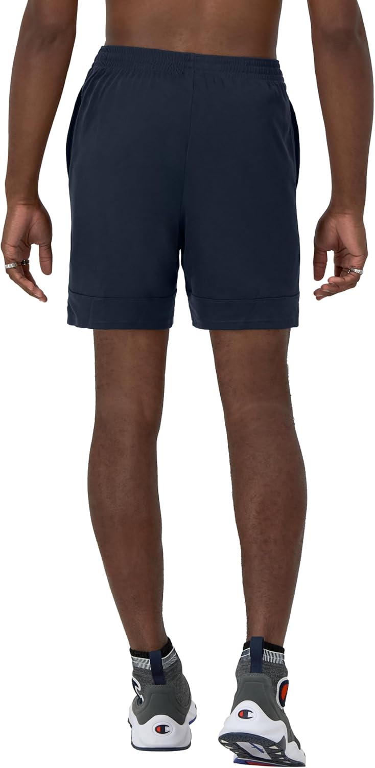 THE LENGTH YOU WANT. For a pickup game, a workout at the gym, or a morning run, these sport shorts for men are a perfect fit. They’re made with DOUBLE DRY™ technology that wicks sweat away from skin and dries in a flash to keep you cool and comfortable. Designed for maximum mobility, these men’s shorts have an elasticized waistband with an inner drawcord that you can adjust to your best fit. Plus, side vents make for easy moves on and off the court. These performance training shorts are thoughtfully designed with convenient side-seam pockets to hold your phone, keys, and other essentials. You’ll appreciate the knee-length 10″ inseam adding coverage and comfort. The finishing touch on this effortless design is the iconic Champion C Logo at the left leg.