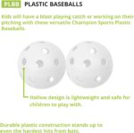 Athletic baseball equipment: Spend time outdoors with Champion Sports’ Plastic Baseballs; Perfect for practicing your pitch, batting skills, or for some leisure time playing catch with friends