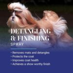 DOG DETANGLER SPRAY – Chris Christensen Ice on Ice Detangling and Finishing Spray is a 3-in-1 grooming spray that detangles, protects, and conditions the coat. Use for detangling and removing mats from the coat, providing protection against dirt and the elements, and as a finishing spray to eliminate static, tame flyaways, and achieve body and shine.