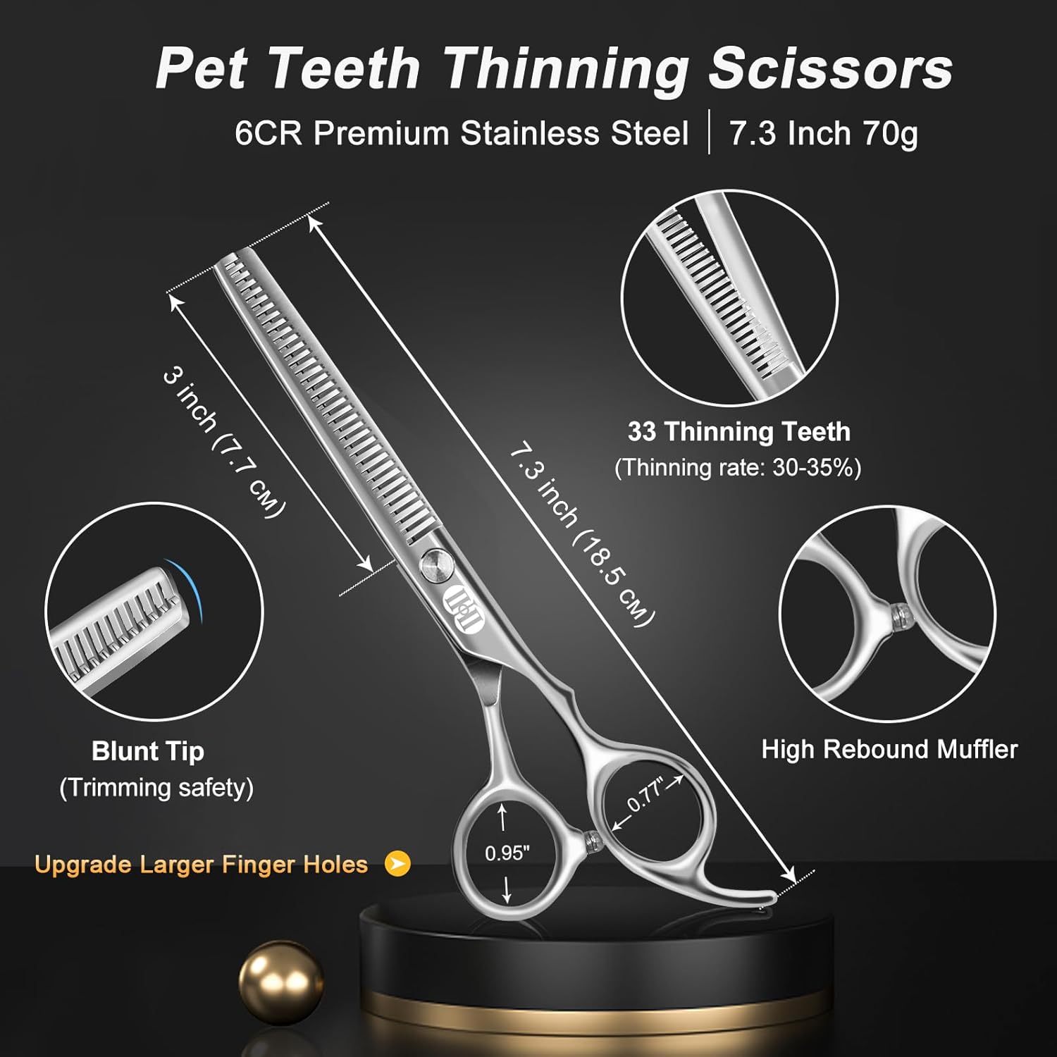 🐶Professional Upgrade Ergonomic Design: ❶Upgrade Larger Finger Holes – From Traditional 0.69-0.85 Inch to Upgraded 0.77-0.95 Inch based on customer recommendations. ❷Safety Round Tip – Keep pets safe, no Injured facial, not scare the pets. ❸Offset Handle Design – Very ergonomic & reduces fatigue. ❹Adjustable Screw Design – Adjust the tightness of the scissors according to our feeling. ❺High Rebound Muffler Design – Reduce the metallic noise and friction of scissors.