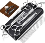 ✨Practical 10-In-1 Dog Grooming Kit: ●6.1 Inch Straight Cutting Scissors ●7.3 Inch Straight Cutting Scissors ●7.3 Inch Down-curved Grooming Scissors ●7.3 Inch Hair Thinning Scissors ●6.5 Inch Dog Grooming Comb ●Gift Leather Bag (Attached Gifts ☛2 × Hair Clips, 1 × Cleaning Cloth, 1 × Scissors Adjuster). ❤️90-DAYS Unconditional Return + 365-DAYS Promise for any quality-related issues, CIICII professional customer team will handle your issues and help you in 12 hours.