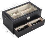 Easier to Pick A Style —– Transparent acrylic top allows you effortlessly to see through the box, making it super handy to pick a pair of glasses or watch to match your outfit