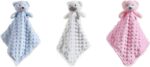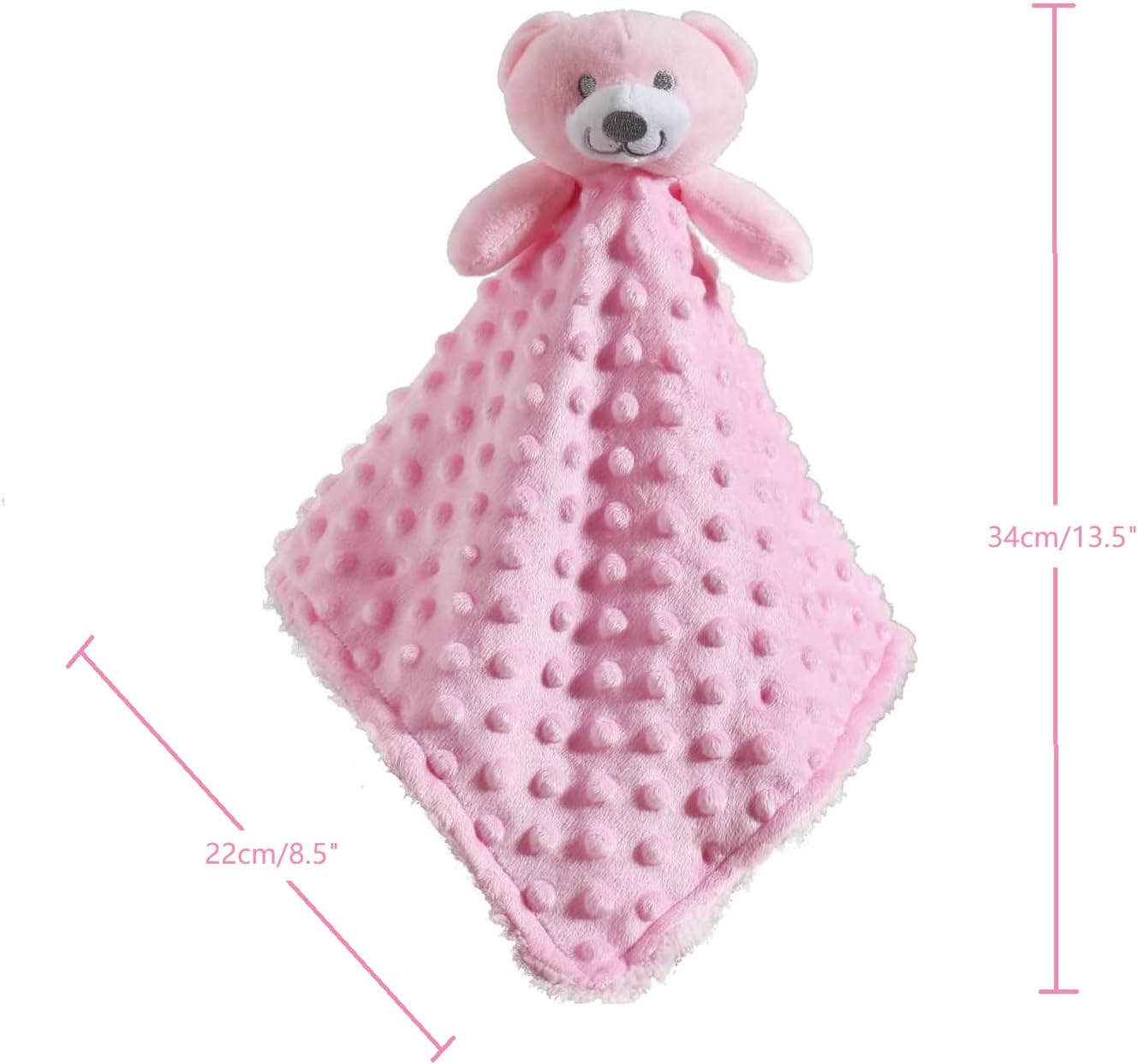 CREVENT Baby Comforting Security Blanket Lovey for Newborn Baby Girls Infants, Minky Dot Front + Sherpa Backing with Animal Face (Pink Bear)