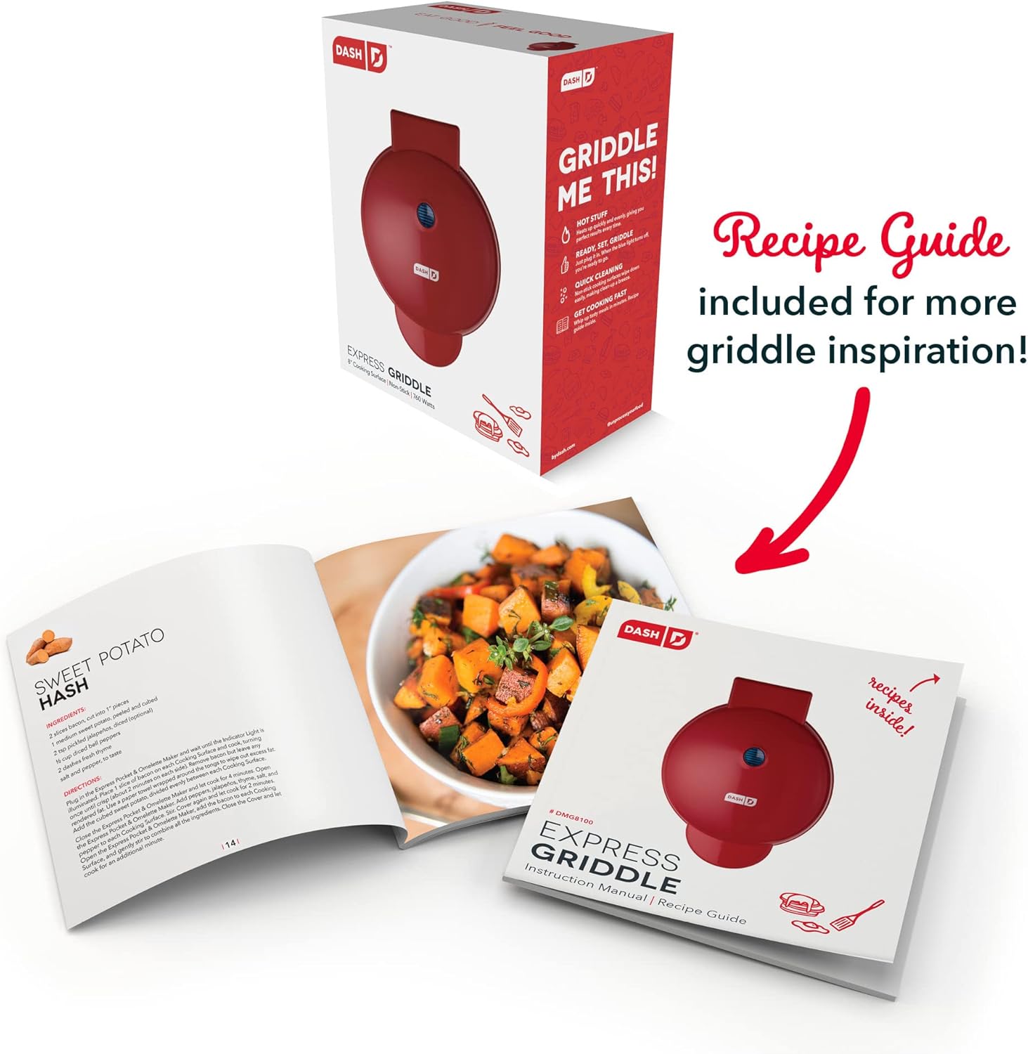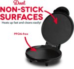 INCLUDES: Backed by a 1-year manufacturer warranty, the 760 watt DASH 8” Express Round Griddle includes anti-slip feet, nonstick heating plates, recipe book and recipe database access (all non-electric parts are easily wiped clean)