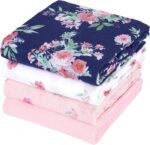 david’s kids 4 Pack Baby Muslin Swaddle Blankets,100% Cotton and Ultra Soft Breathable Receiving Blanket Wrap for Girls, New Born Essentials, Large 47 x 47 inches, Floral Flowers/Pink