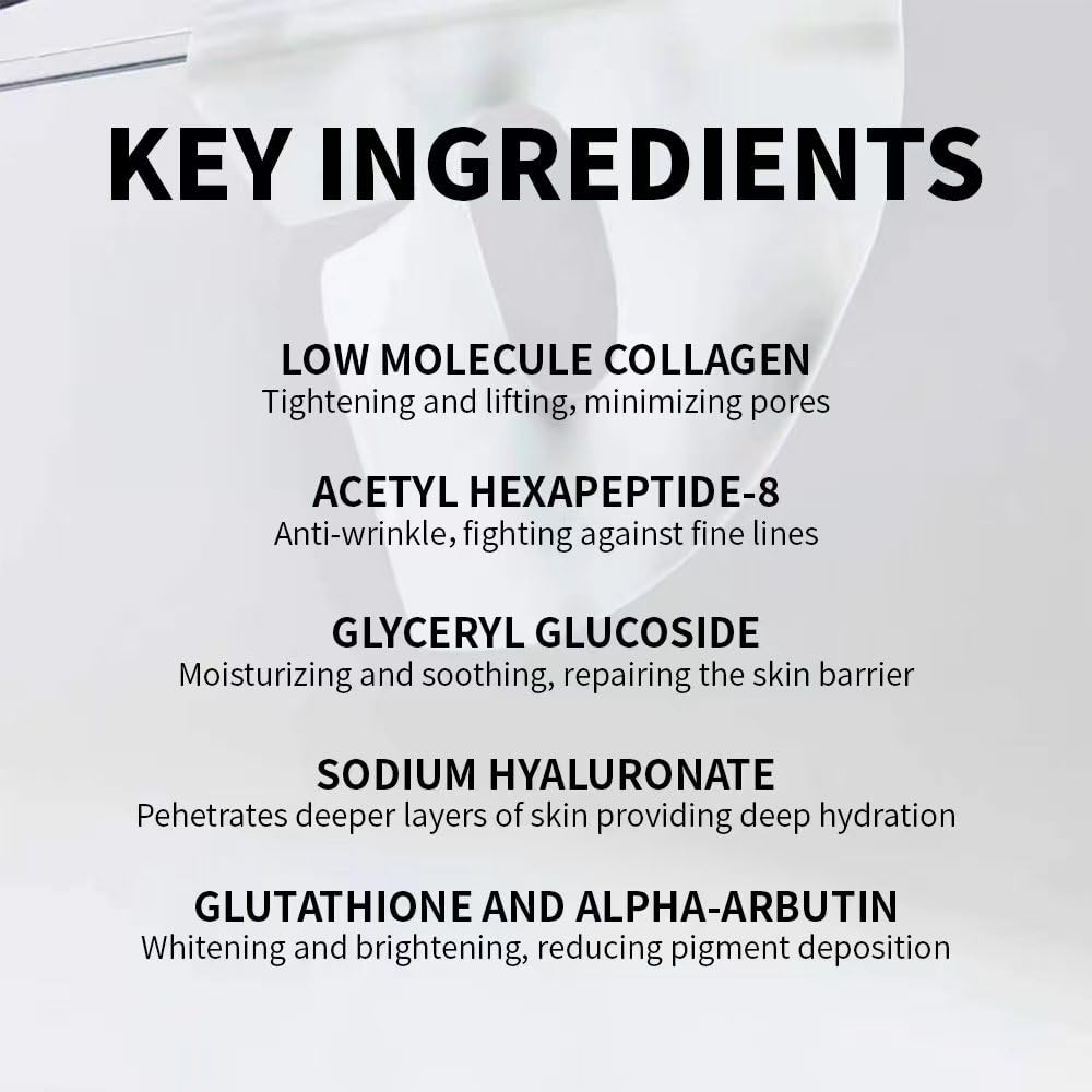 【Deep Hydration】Infused with potent collagen essence, our collagen masks penetrate deep into your skin layers, replenishing moisture and restoring elasticity. The deep collagen mask locks in hydration, leaving your skin soft, supple, and radiant.