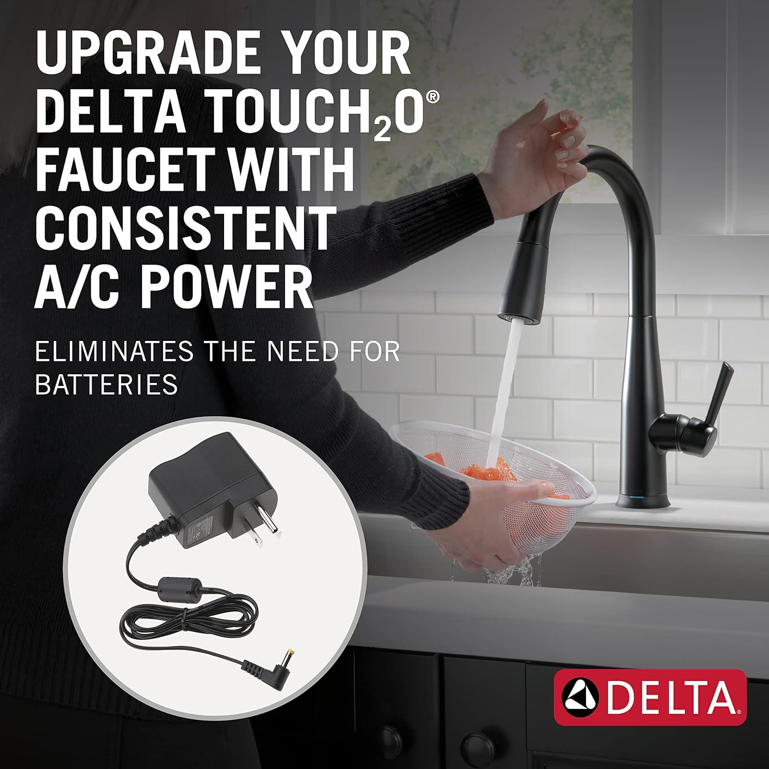 Upgrades your Delta Touch2O faucet by replacing the battery pack with consistent A/C power