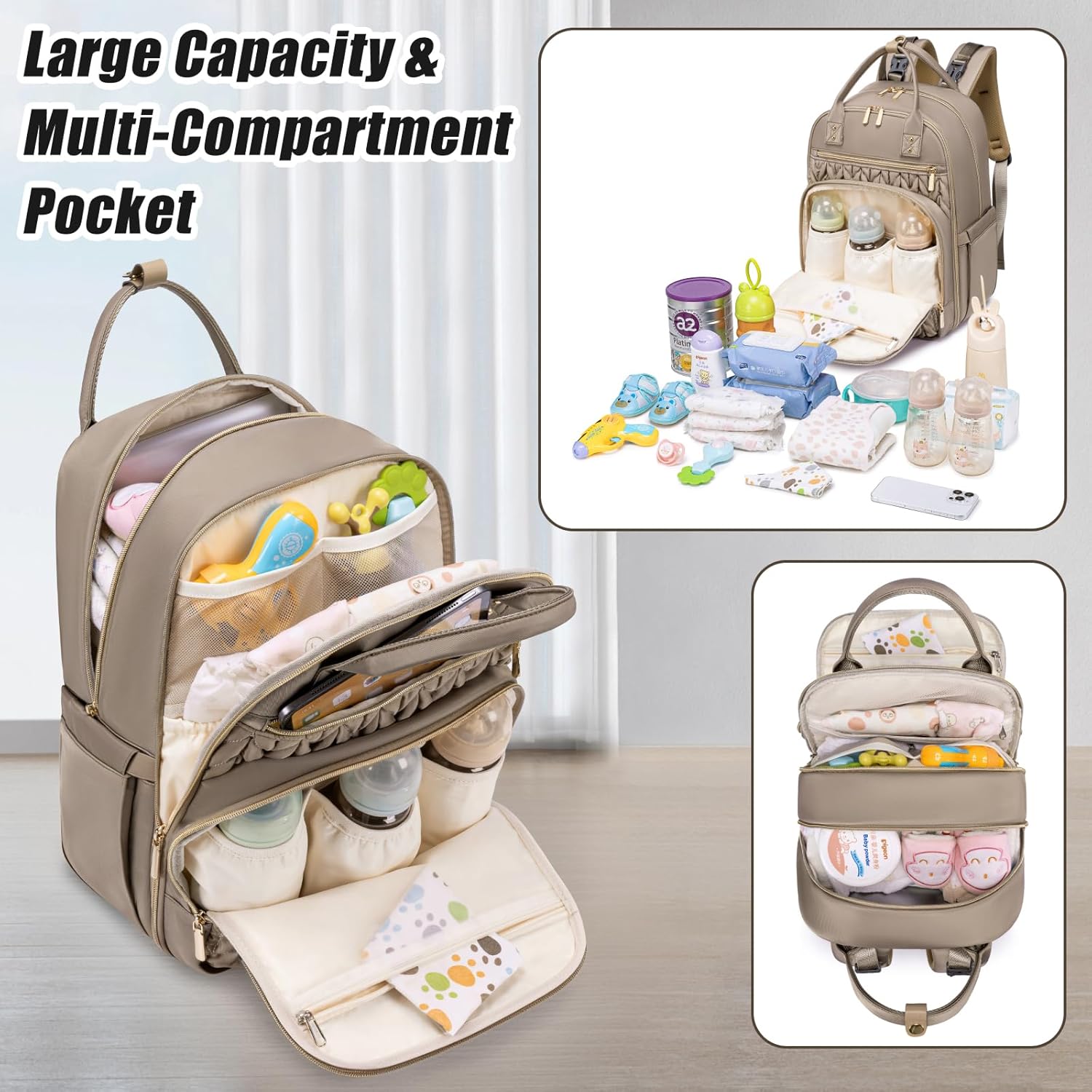 Diaper Bag Backpack,Stylish Baby Diaper Bag,Waterproof Travel Diaper Backpacks Baby Bags with Changing Pad,Stroller Straps,Insulated Pockets (Khaki)