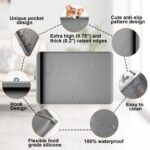 Dog Food Mat – Silicone Dog Mat for Food and Water – 36″ x 24″ Large Pet Feeding Mats with Residue Collection Pocket – Waterproof Dog Cat Bowl Mat with High Edges to Prevent Water Food Spills (Gray)