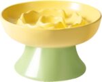 Dog Slow Feeder Bowl,Elevated Ceramic Dog Bowls for Small & Medium & Large Dogs.Durable,Easy to Clean (Yellow and Green)