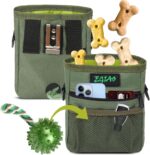 Dog Treat Pouch with Collapsible Dog Bowl, Training Clicker and Poop Bags, Treat Pouches for Pet Training, Magnetic Closure, Built-in Poop Bag Dispenser, Waist Belt Clip, Puppy Treat Bag – Green